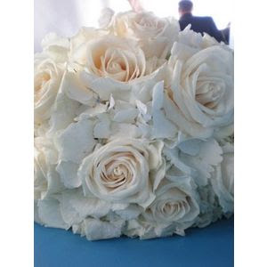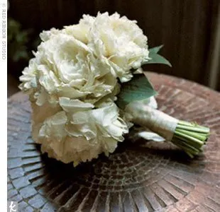 My favorite flower always has been and likely always will be the white rose. From where the obsession originated, I have not a clue, but most anyone who knows me well knows I gravitate toward white roses like a moth to a flame. There is something so romantic, classic, sophisticated and beautiful about a bunch of lush white roses. Needless to say, there has never been a doubt in my mind, not even for a split second, that my bouquet will be all white, with a heavy emphasis on roses. I also love peonies though they are tragically not in season in July. If they were, I would run about the gardens at my father’s house and clip my own bouquet from the peony bushes. I was just flipping through my collection of clipped images of bouquets and, naturally, they all have much in common. Rich, lush all-white blooms with little to no greenery, and big full tightly packed bouquets. Gorgeous! I thought I might share some that I particularly love…