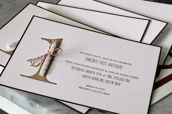 Sometimes the simplest ideas are the very best ones of all. Take these first birthday party invitations for instance. Letterpress printed and paired with a single birthday candle and fabulous packaging, they’re about as charming as they get. Created by Chelsea of Sugar Paper for her son Owen’s first birthday celebration, these invitations are a new favorite.