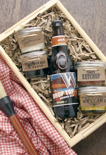 Listen up, guys love meat. It’s just a thing. Do you know a guy who doesn’t love barbecue? (Assuming he’s not a vegetarian of course.) This gift box loaded with homemade bbq condiments is a great gift idea! Get the how-to at Bread and With It